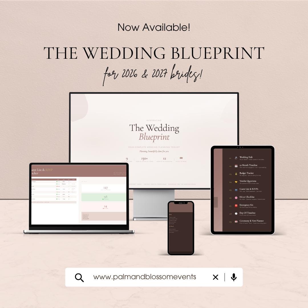 This was created by a wedding planning team who knows firsthand how overwhelming the planning process can feel. We built The Wedding Blueprint to be the tool we wish we had given every bride from day one — organized, beautiful, and actually helpful.