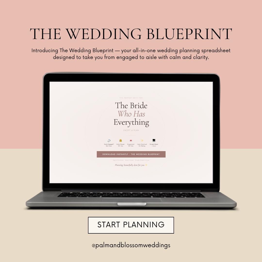 Introducing The Wedding Blueprint — your all-in-one digital wedding planning spreadsheet, designed to take you from newly engaged to walk-down-the-aisle with complete calm, clarity, and confidence.