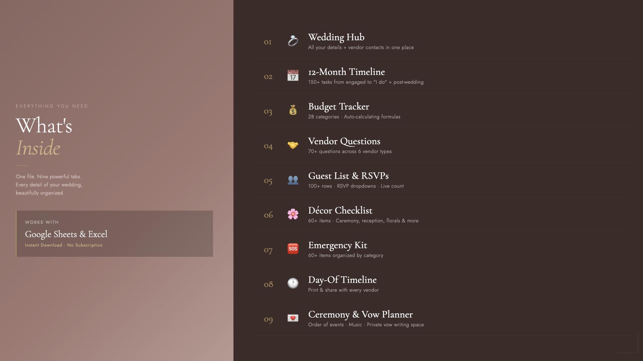 💼 WHAT’S INCLUDED — 9 Tabs of Everything You Need: