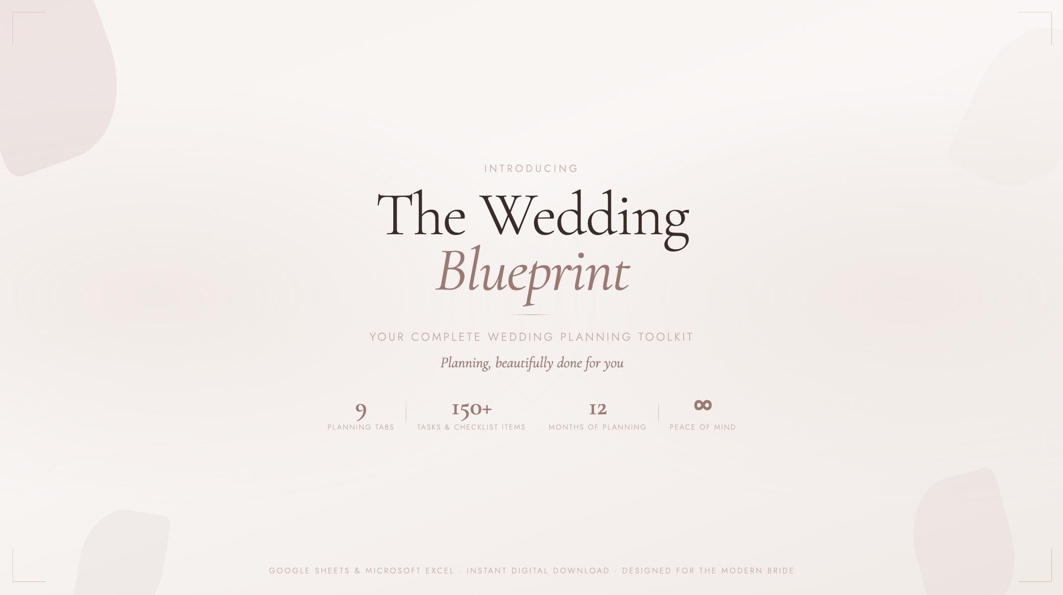 The Wedding Blueprint — Ultimate Bride’s Planning Spreadsheet | Google Sheets| 12-Month Timeline, Budget, Guest List, Decor & Vendor Tracker