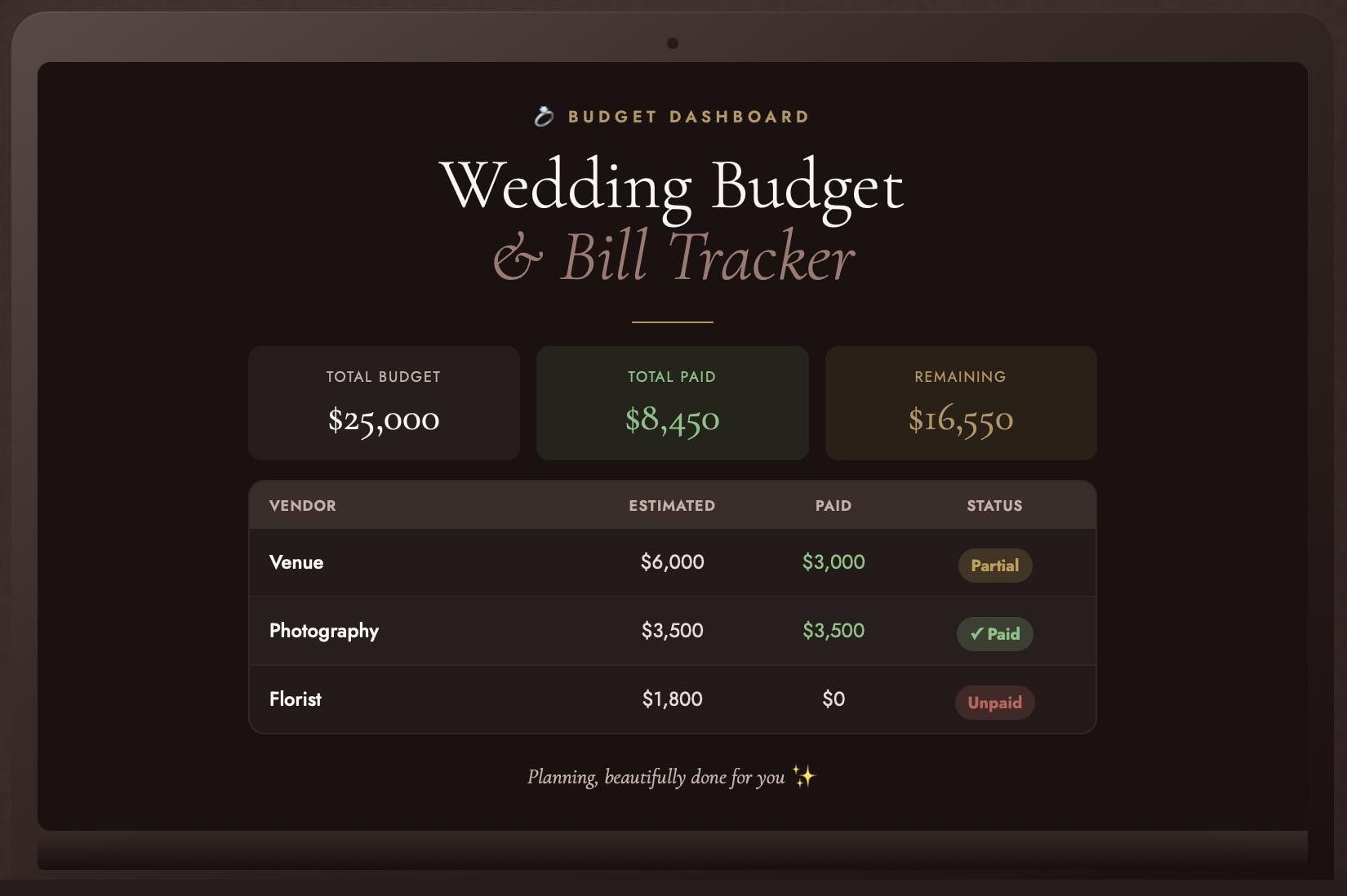 β’ wedding vendor payment tracker