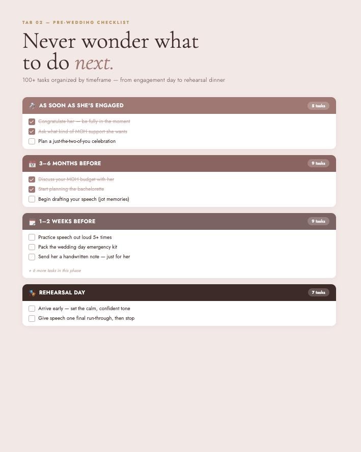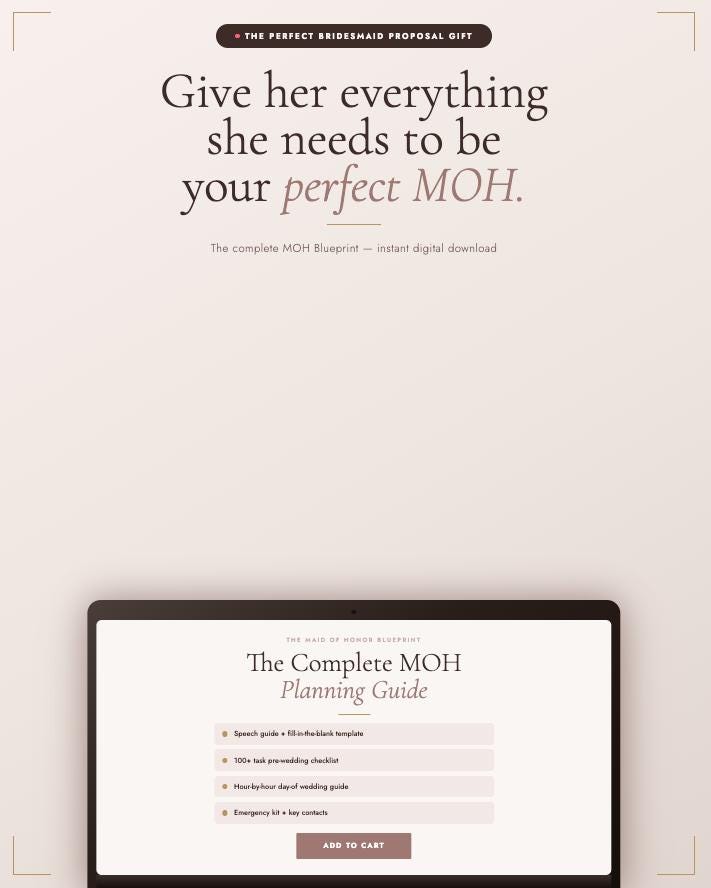 ✅ PERFECT FOR: A newly named MOH who doesn’t know where to start • Anyone terrified of writing a speech • The most organized, thoughtful MOH the bride has ever seen • The perfect engagement or bridesmaid proposal gift