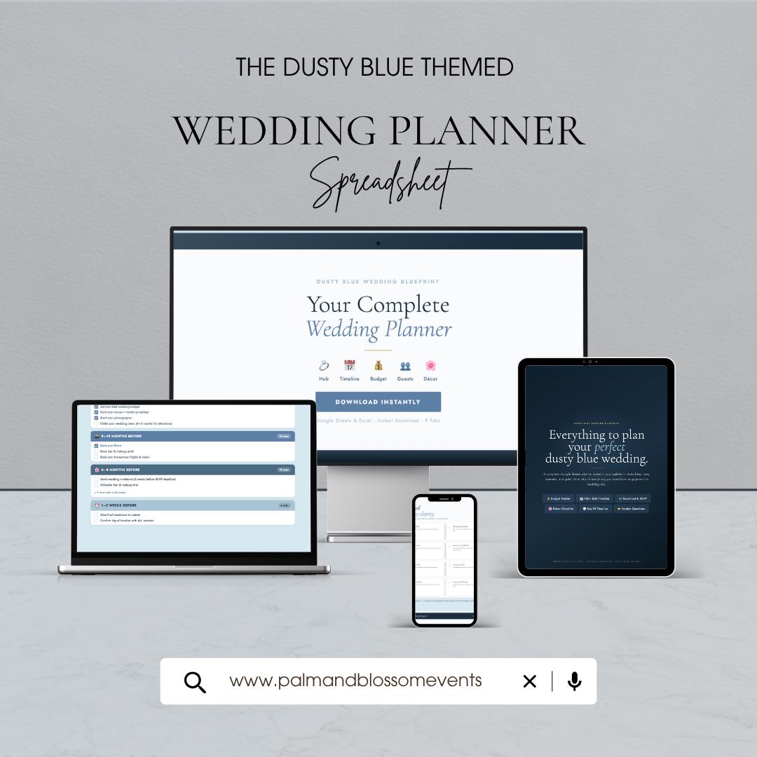 Dusty Blue Wedding Planner Spreadsheet β Budget Tracker, Checklist | Dusty Blue Wedding Blueprint | Google Sheets & Excel | Engagement Gift
