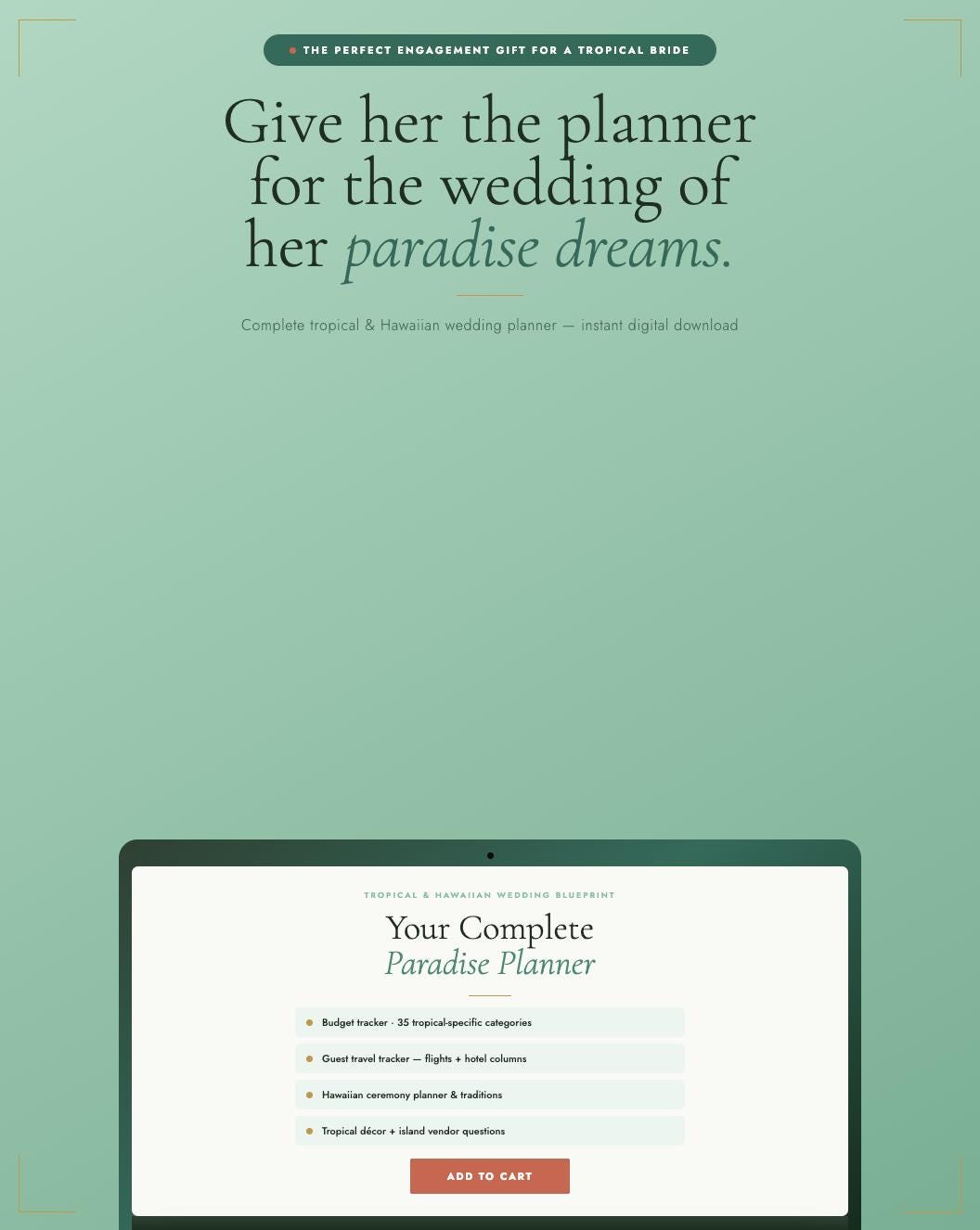PERFECT FOR: Hawaii wedding planning β’ Destination tropical weddings β’ Bali, Caribbean, and island ceremonies β’ Couples planning from the mainland β’ The perfect engagement gift for a tropical bride-to-be