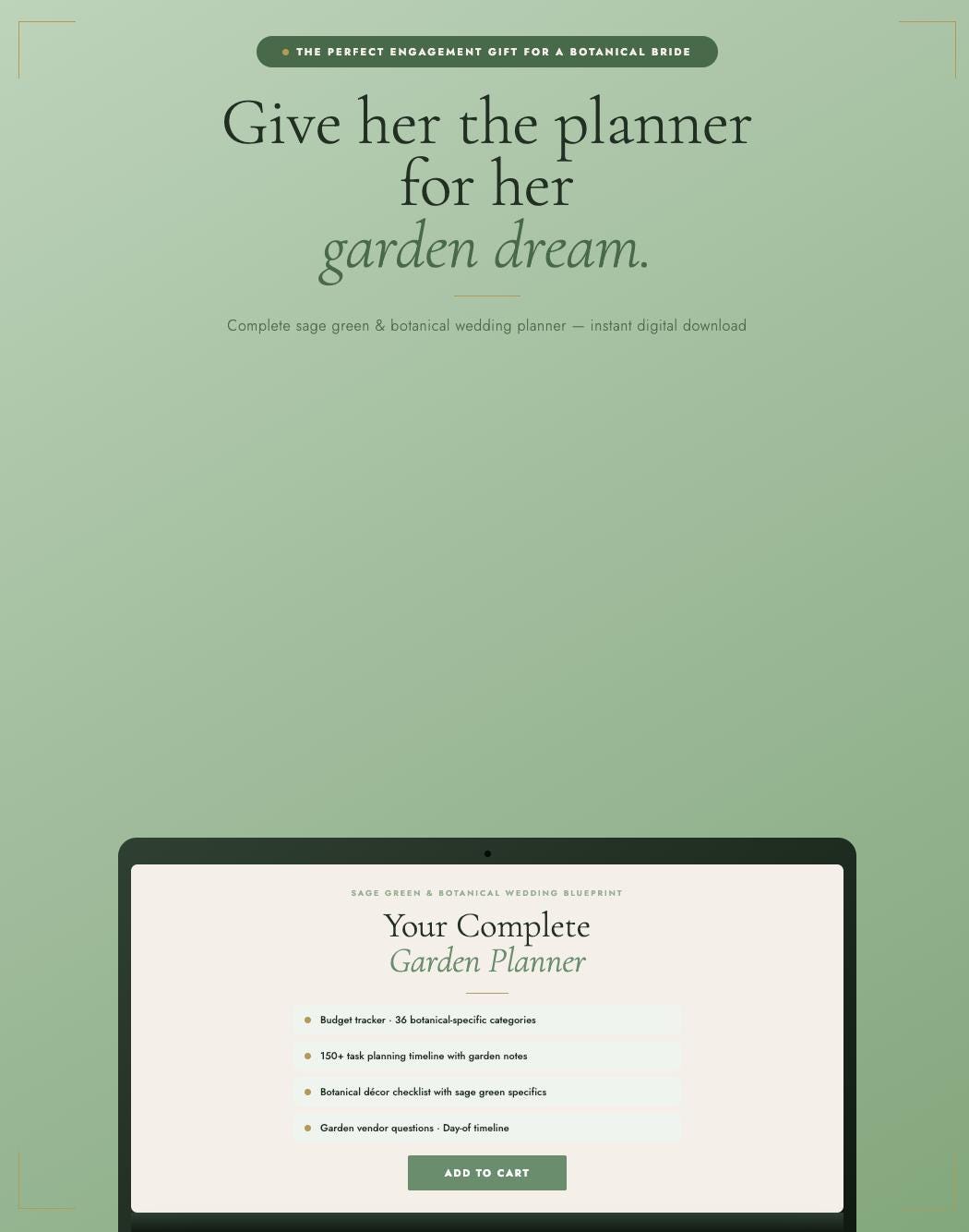 PERFECT FOR: Sage green and botanical brides β’ Garden, estate, vineyard, and greenhouse weddings β’ Rustic and natural outdoor ceremonies β’ Farm-to-table wedding receptions β’ The perfect gift for a newly engaged botanical bride